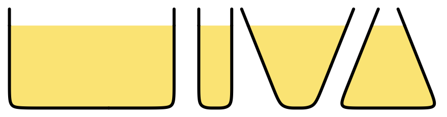 Fig. 5 Four containers with the same depth \(h\) of olive oil but different shapes.#